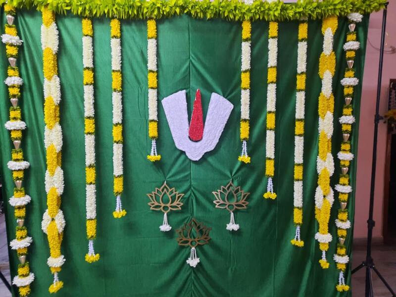 Size: 8ftx8ft Set includes backdrop with all flower strings, foam namam and lotus cutouts