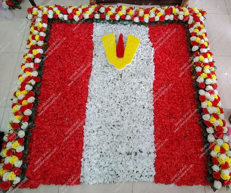 Sharu Space Artificial Red and White Flower Mat Combo