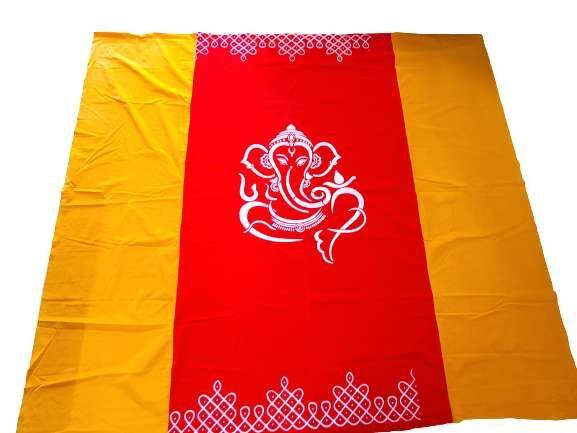 Sharu Space 8X9 Feet Micro Velvet Red and Yellow with Ganesh Print
