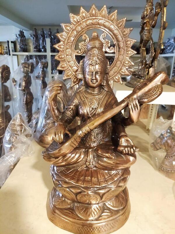 Black Metal Saraswati Idol - 24in