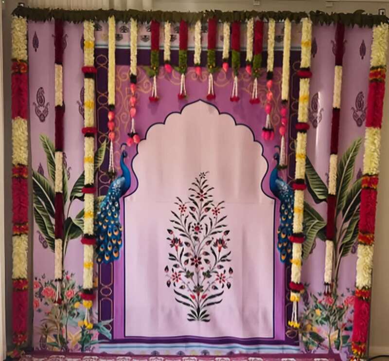 Sharu Space Satin Purple Peacock Backdrop Combo