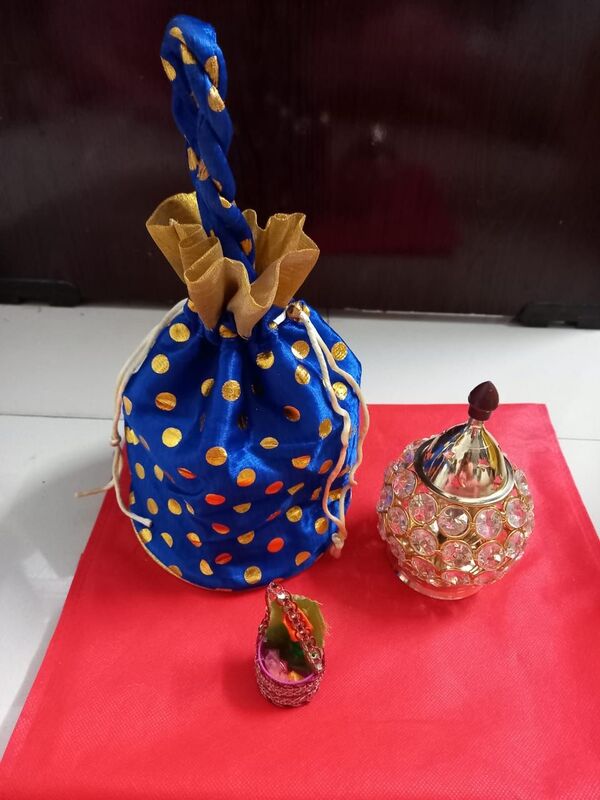 Sharu Space Polka dots Bag with Crystal Diya Combo