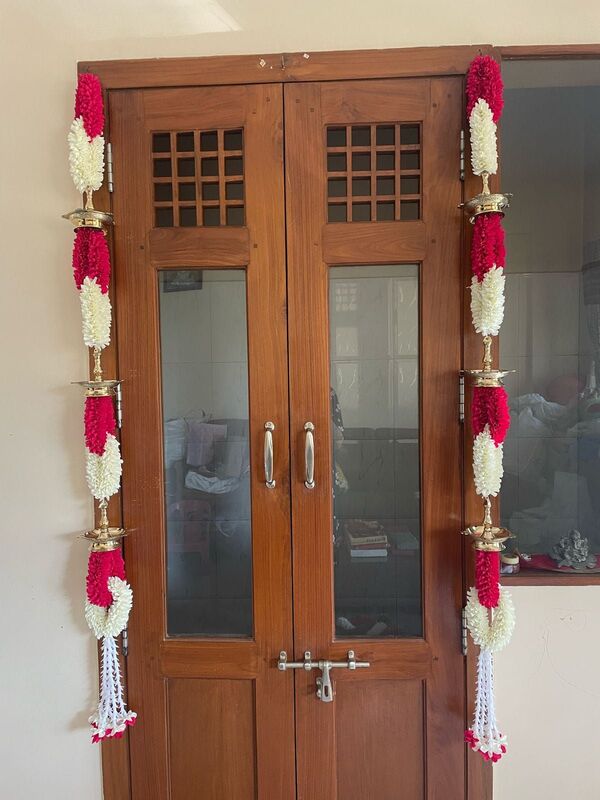 Brass Diya with Fabric flowers pair