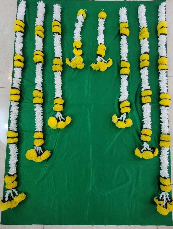 Sharu Space Synthetic Floral Set for door décor, White & Yellow (pack of 8)