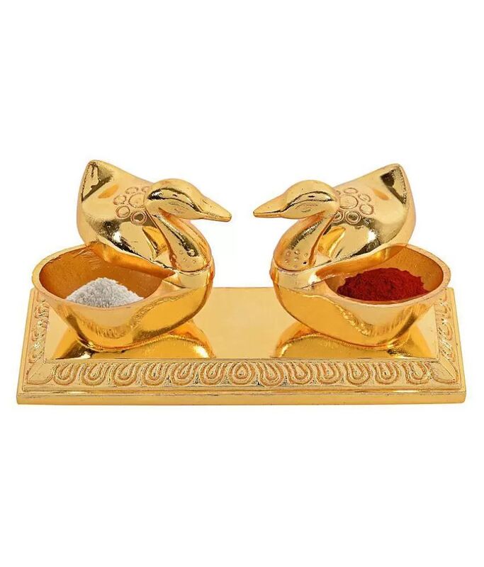 Sharu Space Polished Metal Double Duck Metal Kumkum Holder