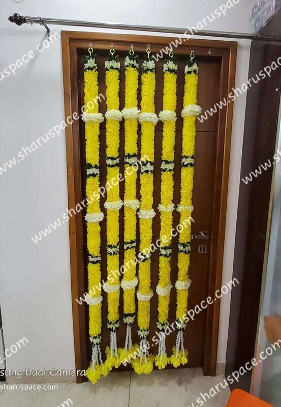Sharu Space Yellow with White Ring Flower Garlands 6ft - Pair