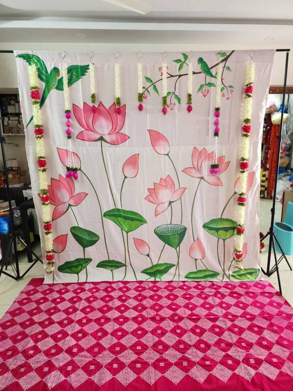 Sharu Space Lotus Theme Backdrop with Floor Mat Combo