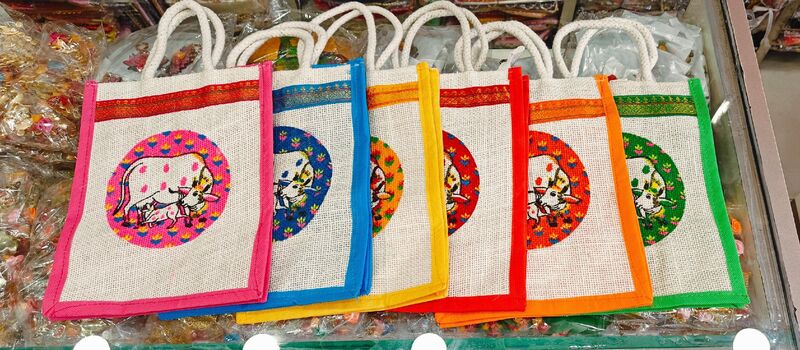 Cow print Jute Bags Size 8/10/5inch Colour mixed pack Pack of 25pcs