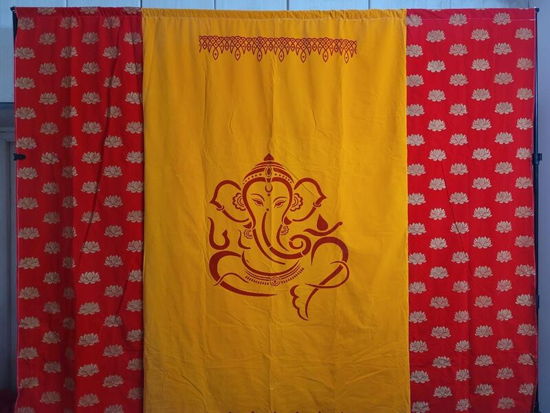 Sharu Space Micro Velvet Ganesh Backdrop Yellow and Red with Lotus